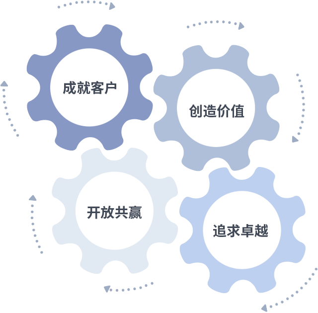 成就客户是一切决策的出发点,创造价值是衡量所有工作的标准,追求卓越是豪门国际做事做人的态度,开放共赢是豪门国际的格局也是最终的结果。价值观的齿轮环环相扣,推动着组织里的每个人不断向前。
